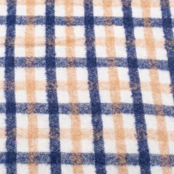 Tela de paño en cuadros de lana de mohair. Se trata de un paño de alta calidad con cierto grosor, de textura suave y de tacto agradable. Es un tejido con cuerpo, muy manejable, gracias a su composición resulta muy cálido y no pesa, es ideal para la confección de prendas de vestir, especialmente prendas de abrigo.